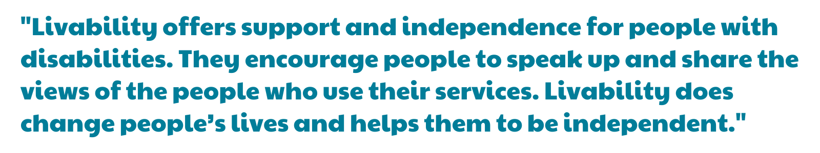 Catherine and Dan, both wheelchair users living in a Shaftesbury service, took part in the Disabled Citizens’ Enquiry, which aims to make places and streets more usable for disabled people. Through this work, Catherine appeared in a recent ITV news story, which highlighted just how difficult it can be using a wheelchair on pavements cluttered with café chairs, signage and other obstacles. Catherine and Dan have also worked with Norfolk County Council to develop a county-wide social care and health ethical framework, as well as taking part in training with sustainable transport group Sustrans.