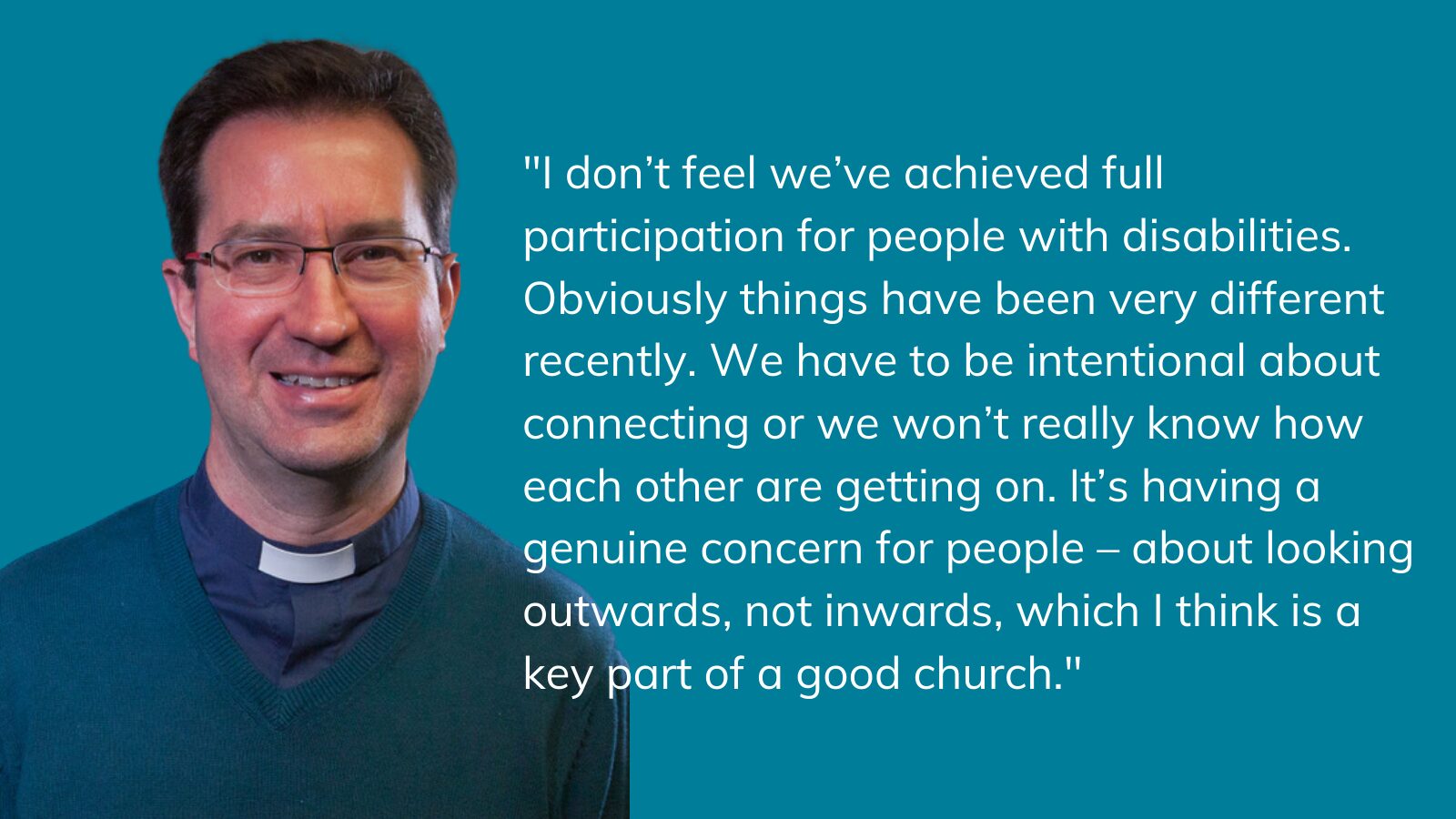 Revd Peter feels there’s always more to be done: ‘I don’t feel we’ve achieved full participation for people with disabilities. Obviously things have been very different recently. We have to be intentional about connecting or we won’t really know how each other are getting on. It’s having a genuine concern for people – about looking outwards, not inwards, which I think is a key part of a good church.’
