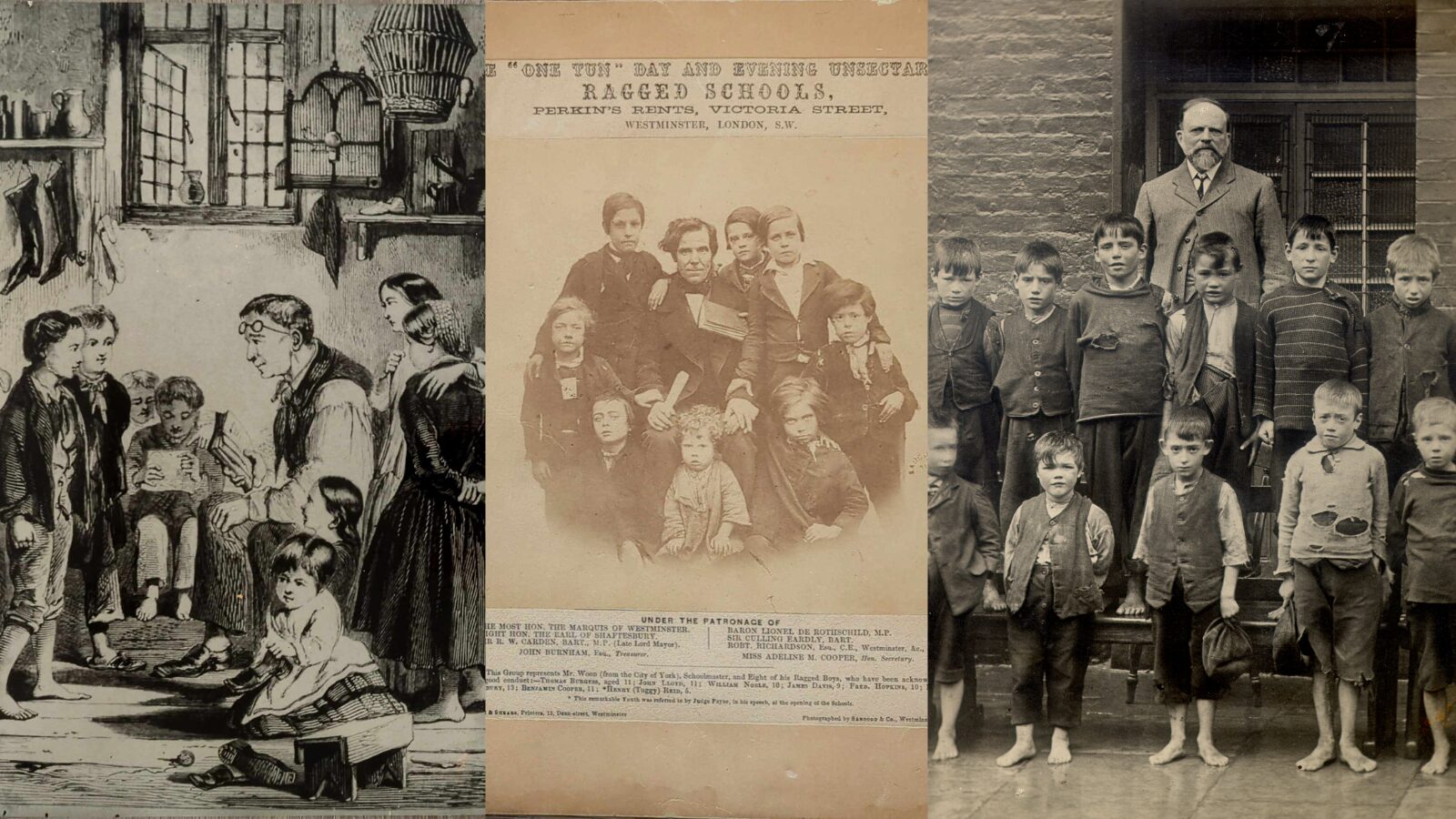 In 1844, Lord Shaftesbury became president of the Ragged School Union, bringing together charity schools which provided street children with education and often life’s essentials such as food and clothing.